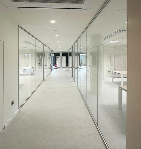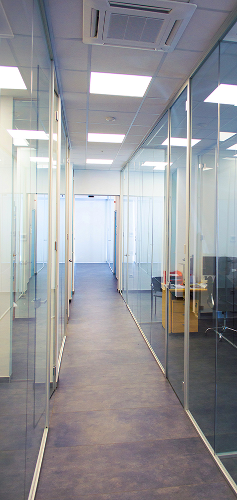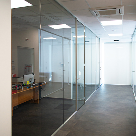 - All'interno con la Parete Leonardo per delimitare i vari uffici con