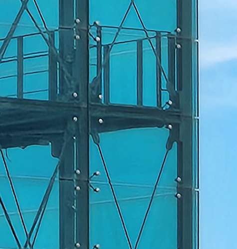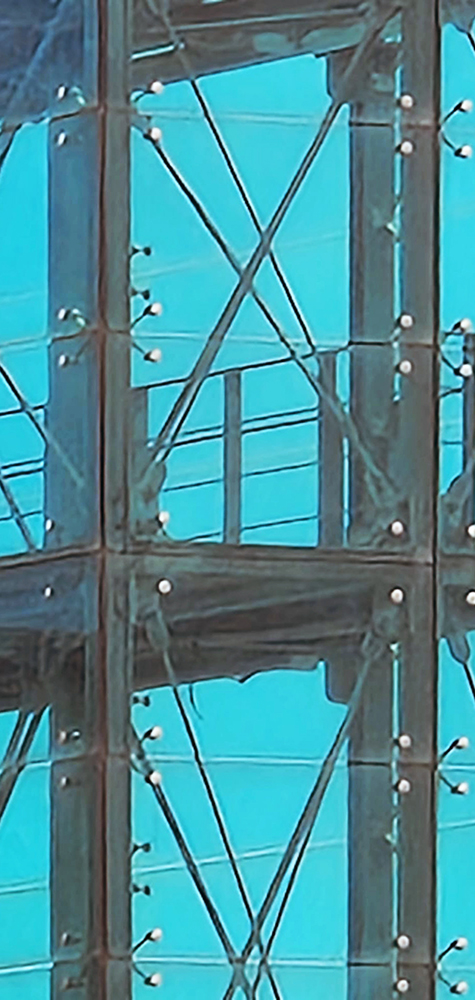 Sistema che si distingue per l'elevata elasticità dei fissaggi che consentono la realizzazione di superfici vetrate molto più ampie.