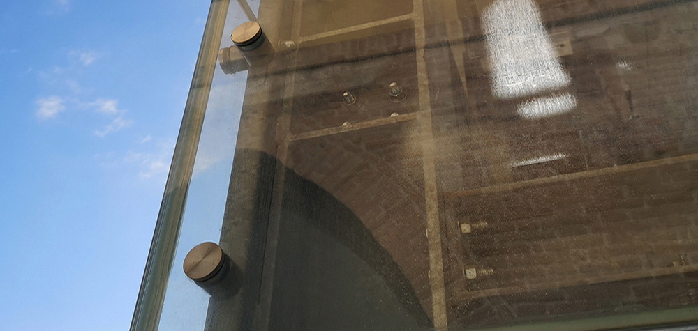 Abbiamo utilizzato distanziatori "GIOTTO"Ø60 certificati 2kN UNI e vetri stratificati 1010.4 con plastico SG.